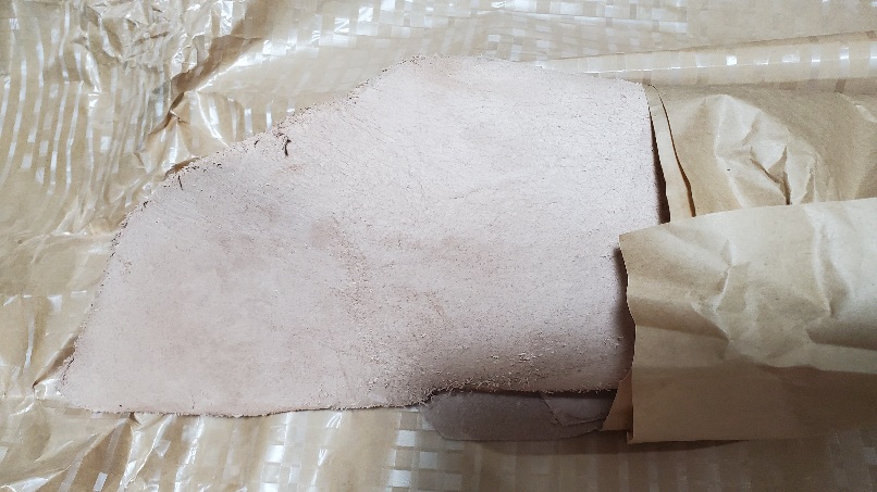 ヌメ半裁の床革の1㎜厚を1,100円+送料で、偶然にあったから買っちゃった😂